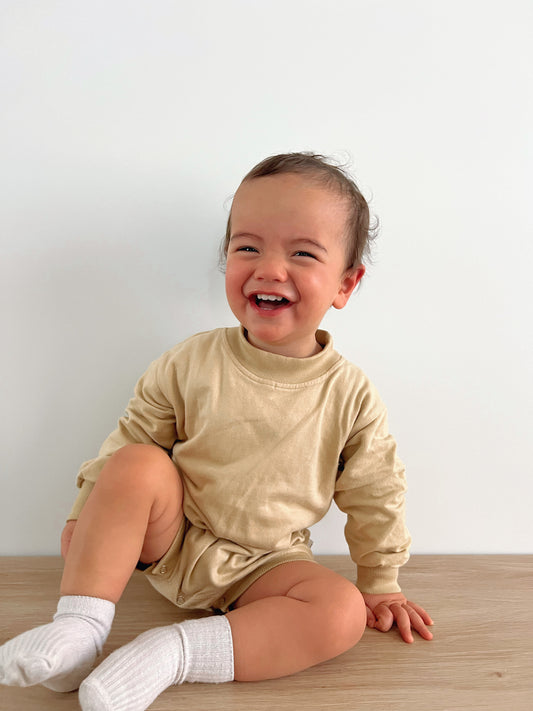PUFF PRINT ROMPER - LATTE